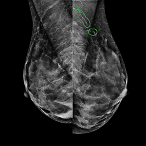 Mammo with Cardiac Screening uses AI technology to enhance the findings on your screening mammogram by applying a specialized filter to the images. This filter identifies and quantifies calcium deposits in the arteries running through your breast. While breast arterial calcification doesn’t have any effect on your risk for breast cancer, growing clinical evidence shows these calcifications may be an early sign of heart disease.